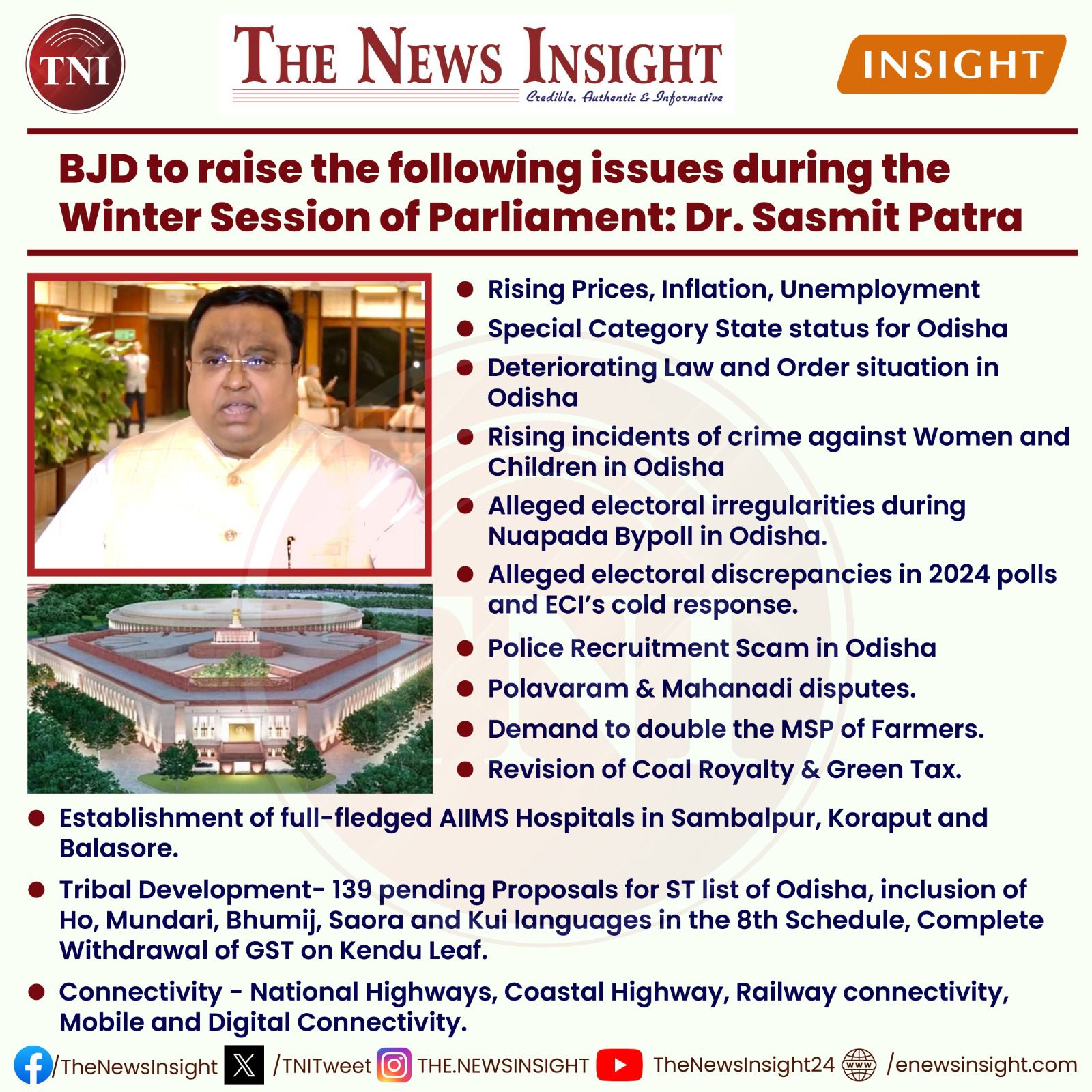 After the all-party meeting BJD leader Sasmit Patra said, their party will raise the issues of Inflation and unemployment. Odisha deserves Special Category State Status. In the recent Nuapada by-elections, BJD observed electoral irregularities. All opposition parties want electoral transparency.