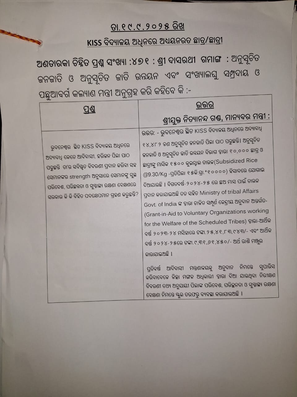 While replying to a question asked by Mohana MLA Dasarathi Gamanga, Minister for ST & SC Development, Nityanand Gand informed in the State Assembly that as of now, 14,482 Scheduled Tribe children are studying at KISS University in Bhubaneswar.
