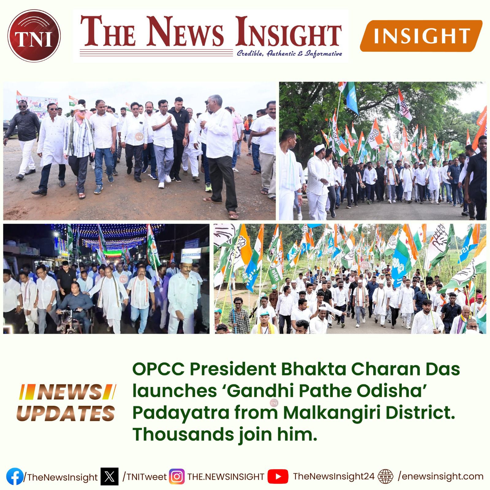 Congress launches ‘Gandhi Pathe Odisha Yatra’ By Sagarika Satapathy Published: Oct 2, 2025 9:08 pm Share Odisha Pradesh Congress Committee (OPCC) on Thursday launched ‘Gandhi Pathe Odisha Yatra’ in Malkangiri on the occasion of Gandhi Jayanti. Support Independent Journalism? Keep us live. Bhakta DasCongressGandhi Pathe Odisha YatraPolitics Share FacebookTwitterWhatsApp