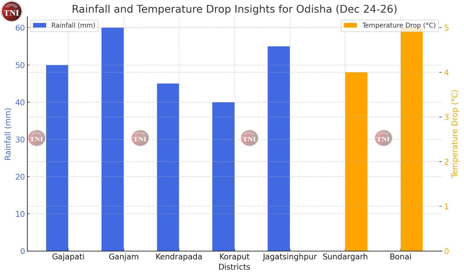 Following the rainfall, Odisha will experience a resurgence of cold wave conditions. IMD predicts a significant drop in temperatures by 2 to 4 degrees Celsius starting December 26. Districts such as Sundargarh and Bonai, which have already faced severe cold spells recently, are expected to shiver under similar conditions post-Christmas.