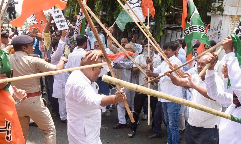 Tensions escalated in Patna, where BJP and Congress workers clashed, attacked each other with flags, and pelted stones. Police intervened and began an inquiry.