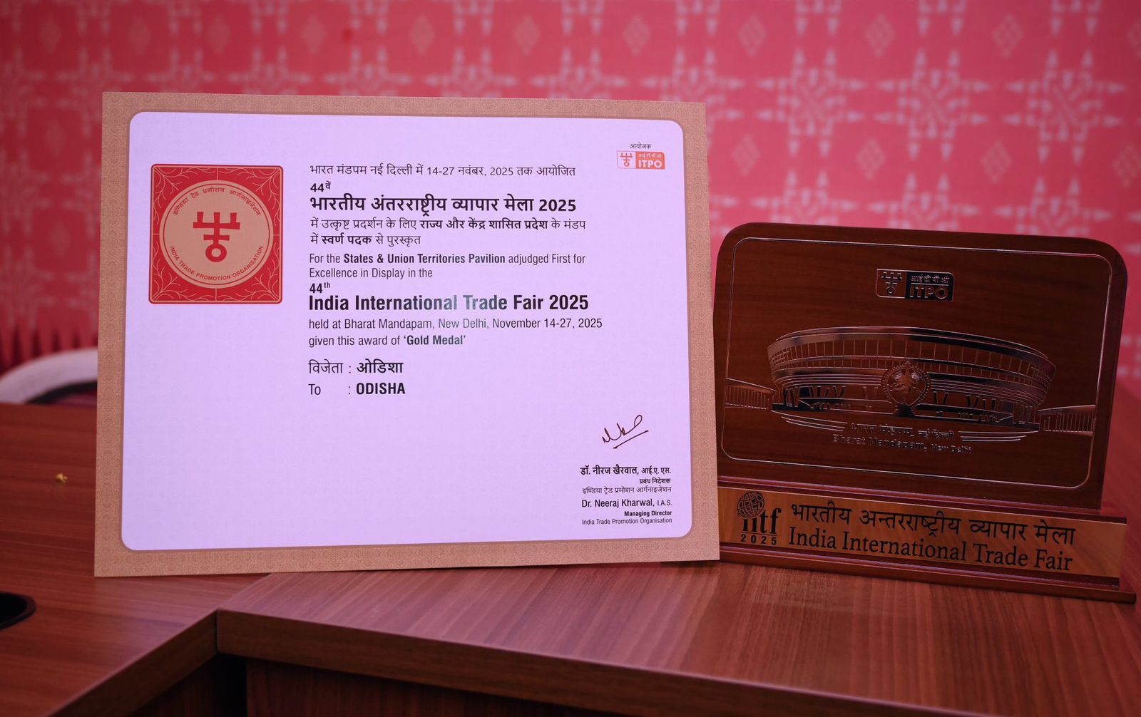 The Odisha Pavilion won the Gold Medal for Excellence in Display at 44th India International Trade Fair 2025 held at the Bharat Mandapam complex in New Delhi. The pavilion, themed ‘Ek Bharat, Sresth Bharat’, showcased the state’s rich heritage, cultural art, and commitment to development.