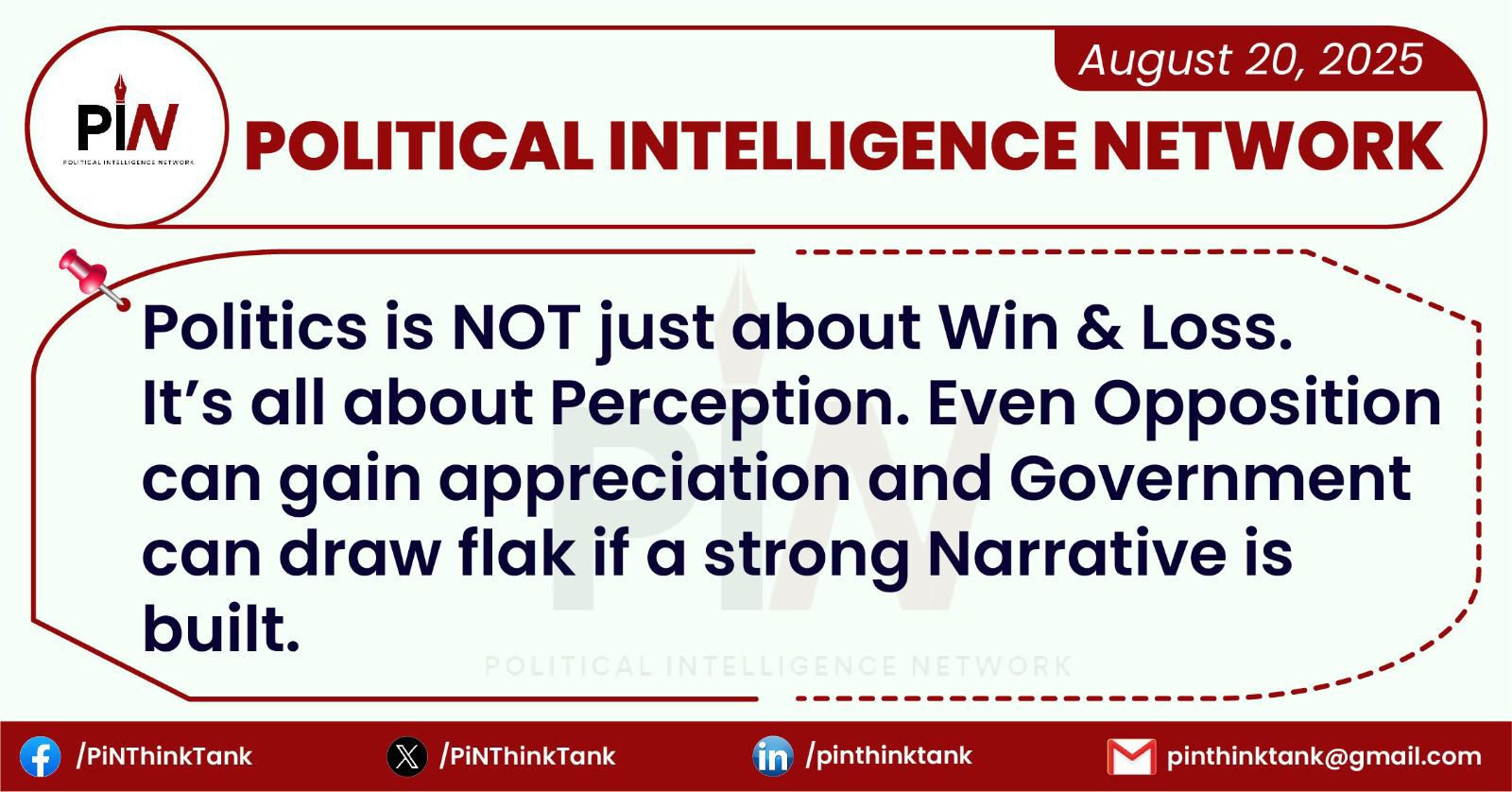 Perceptions of Politics By Sagarika Satapathy Published: Aug 20, 2025 3:48 pm Share Politics is not just about Win and Loss. It’s all about perception. Support Independent Journalism? Keep us live. Perceptions of PoliticsPolitics Share FacebookTwitterWhatsApp