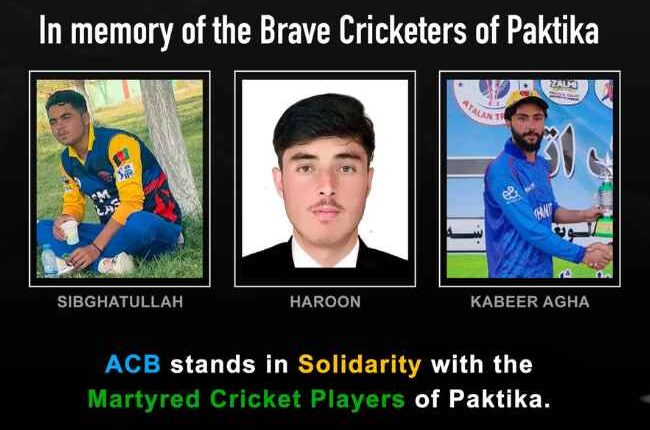 In a statement shared on social media, the ACB identified the victims as Kabeer, Sibghatullah, and Haroon — all domestic players from Urgun district — and condemned the attack as “a cowardly act carried out by the Pakistani regime.” The Board said that five other civilians were killed and seven more were injured in the strikes, which hit residential areas in Argun and Bermal districts near the Durand Line.
