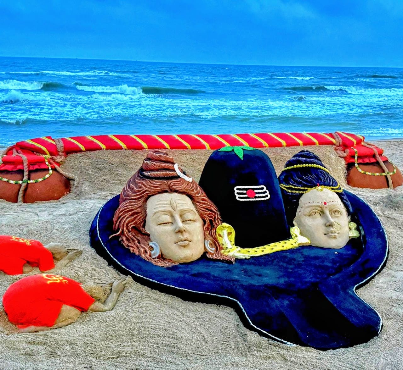 📌Sand artist Sudarsan Pattnaik creates 30-feet sand sculpture of Lord Shiva, Goddess Parvati and Kanwar on the fourth and last Monday of Shravan month.