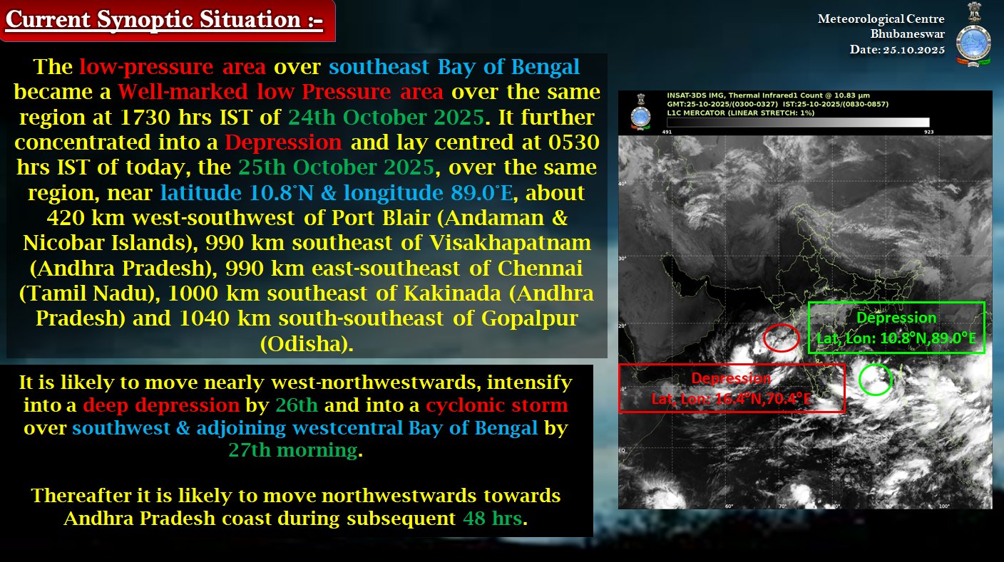 📌Cyclone ‘Montha’ update: Well-marked low-pressure area over Bay of Bengal intensifies into depression. Odisha on high alert ahead of cyclone.