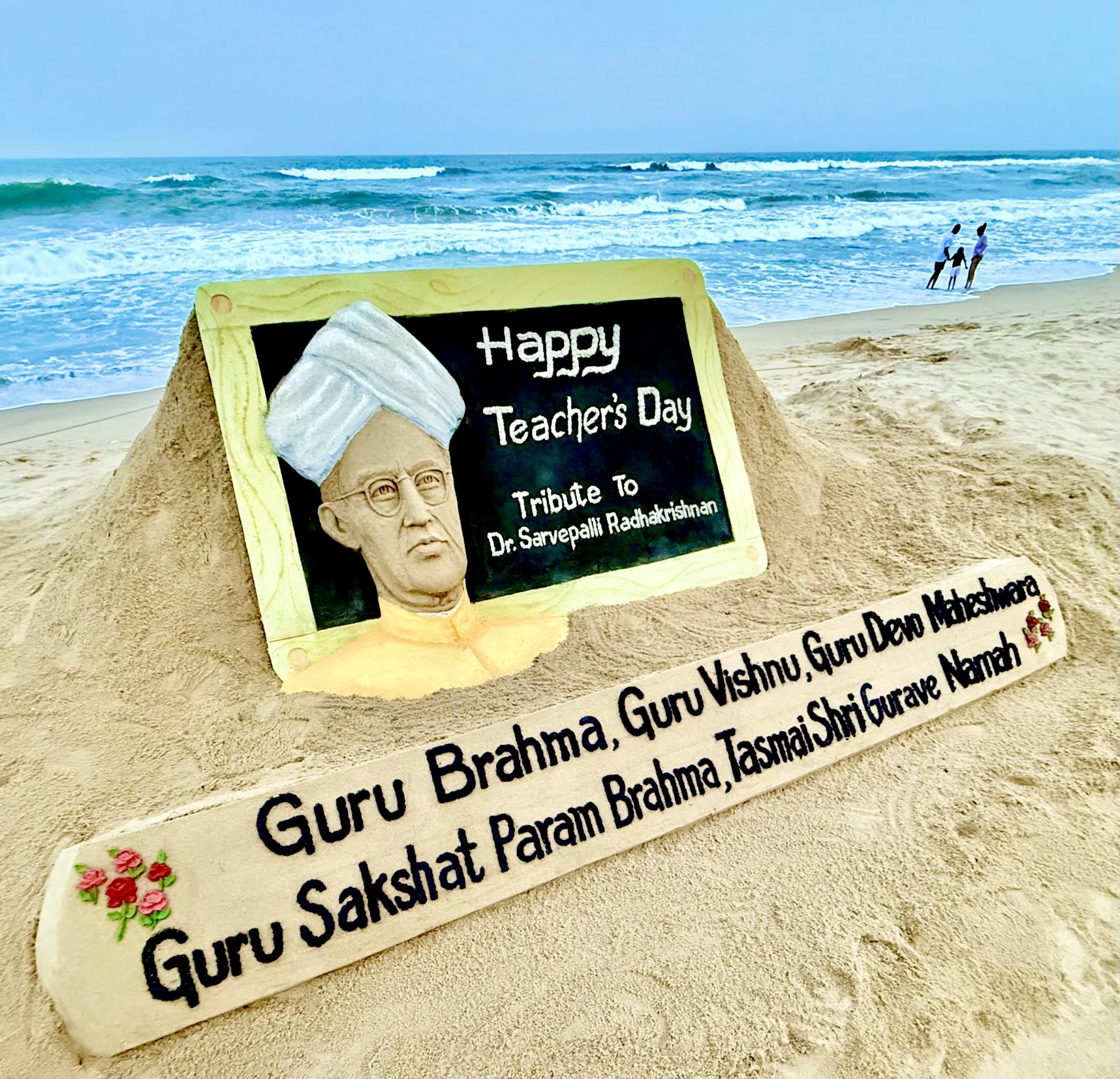 📌Renowned sand artist Sudarsan Pattnaik creates a sand sculpture of former President of India Sarvepalli Radhakrishnan on the occasion of Teachers’ day.