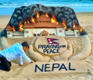 📌Renowned Sand artist Sudarsan Pattnaik creates sand sculpture appealing for peace in Nepal.